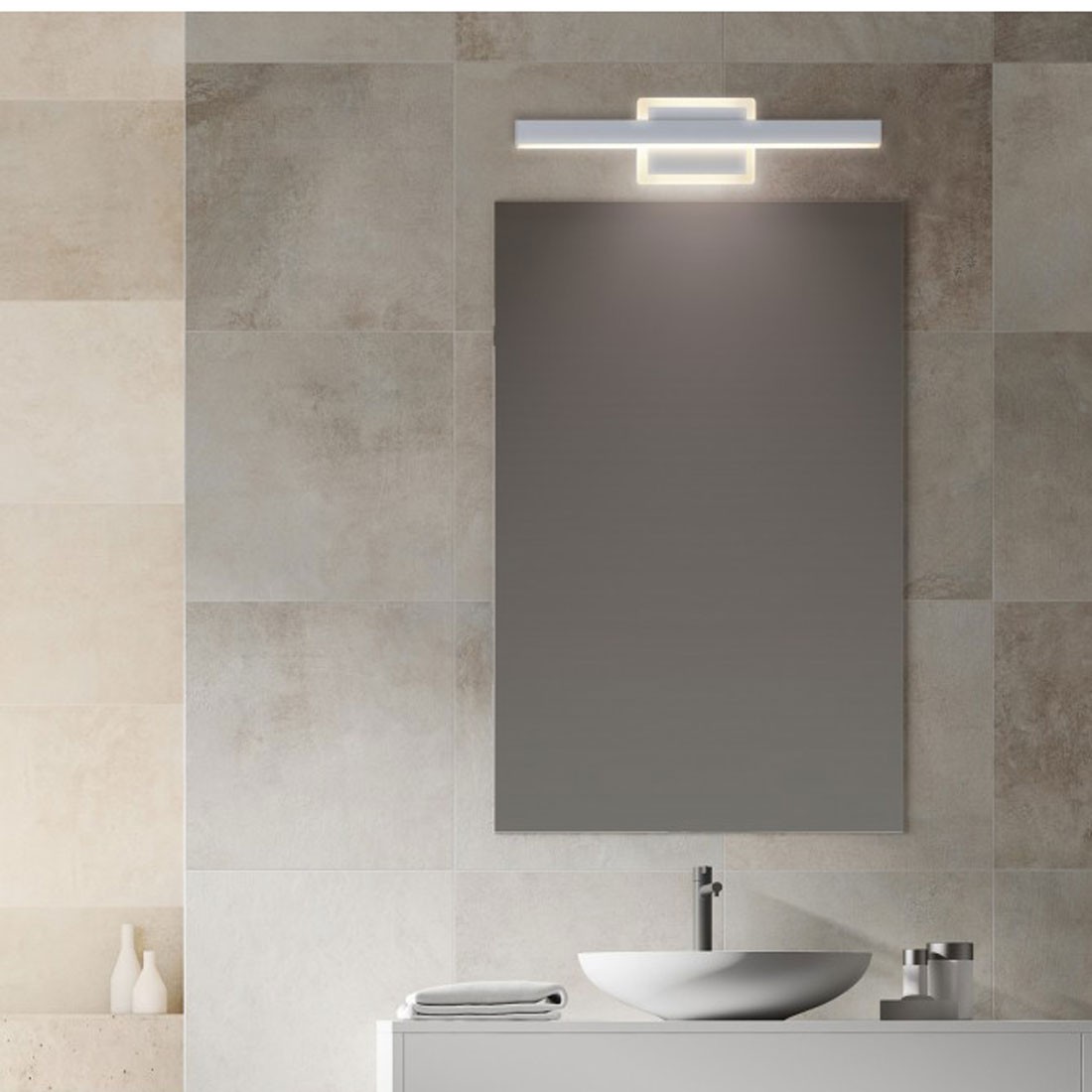 Aplique Baño Blanco con Luz en Frontal y Base