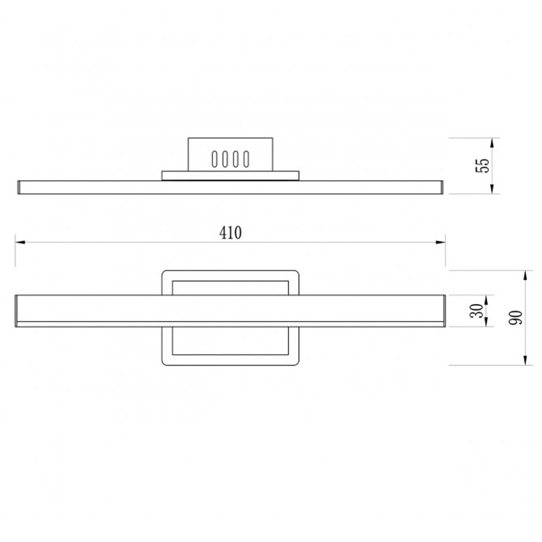 Aplique de Pared Led de metal acabado cromo con luz en base a pared y frontal.