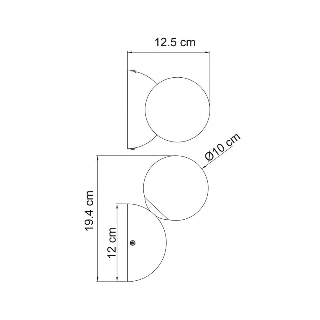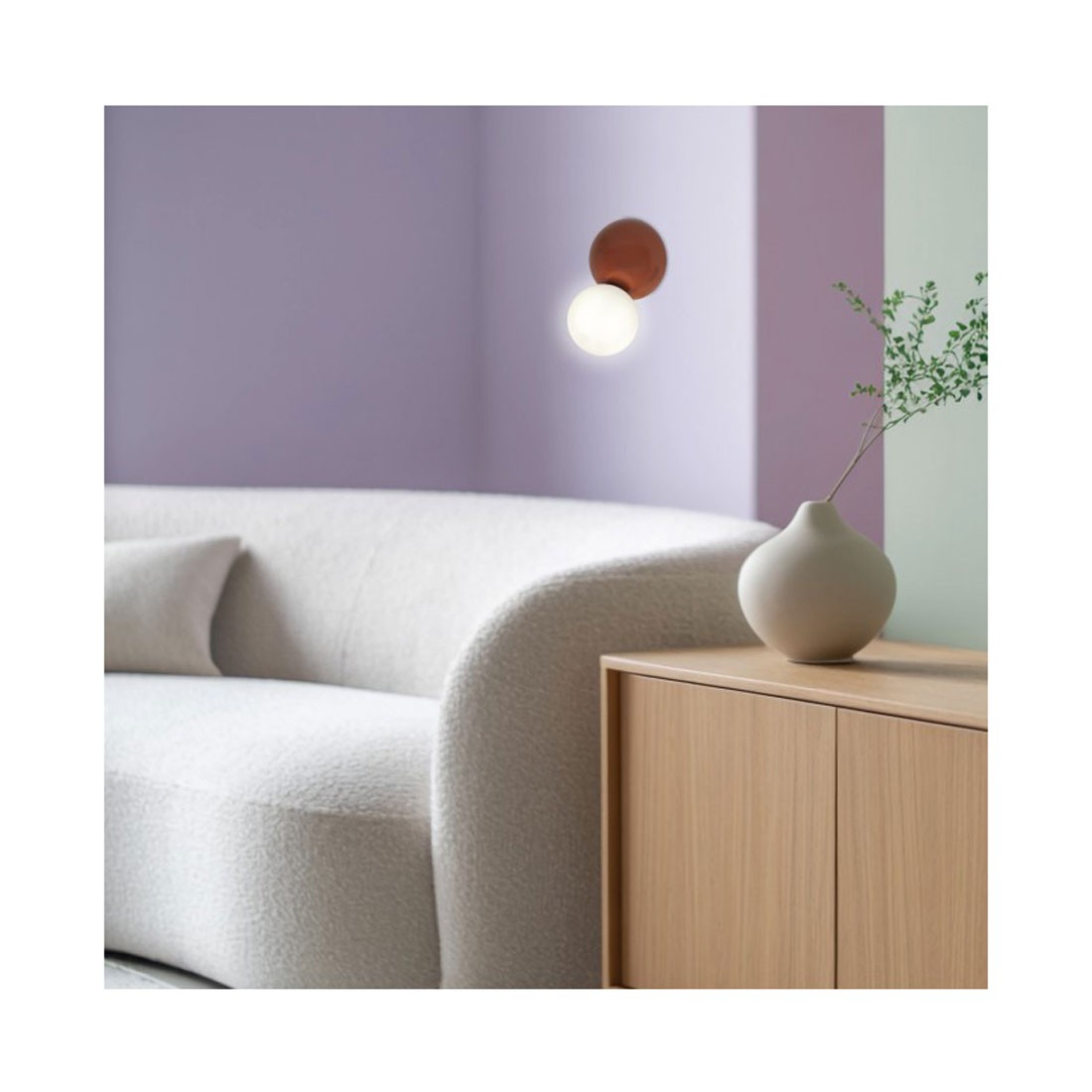 Lámpara de pared con 1 luz de metal terracota y tulipa de cristal bola blanca de 10 cm.