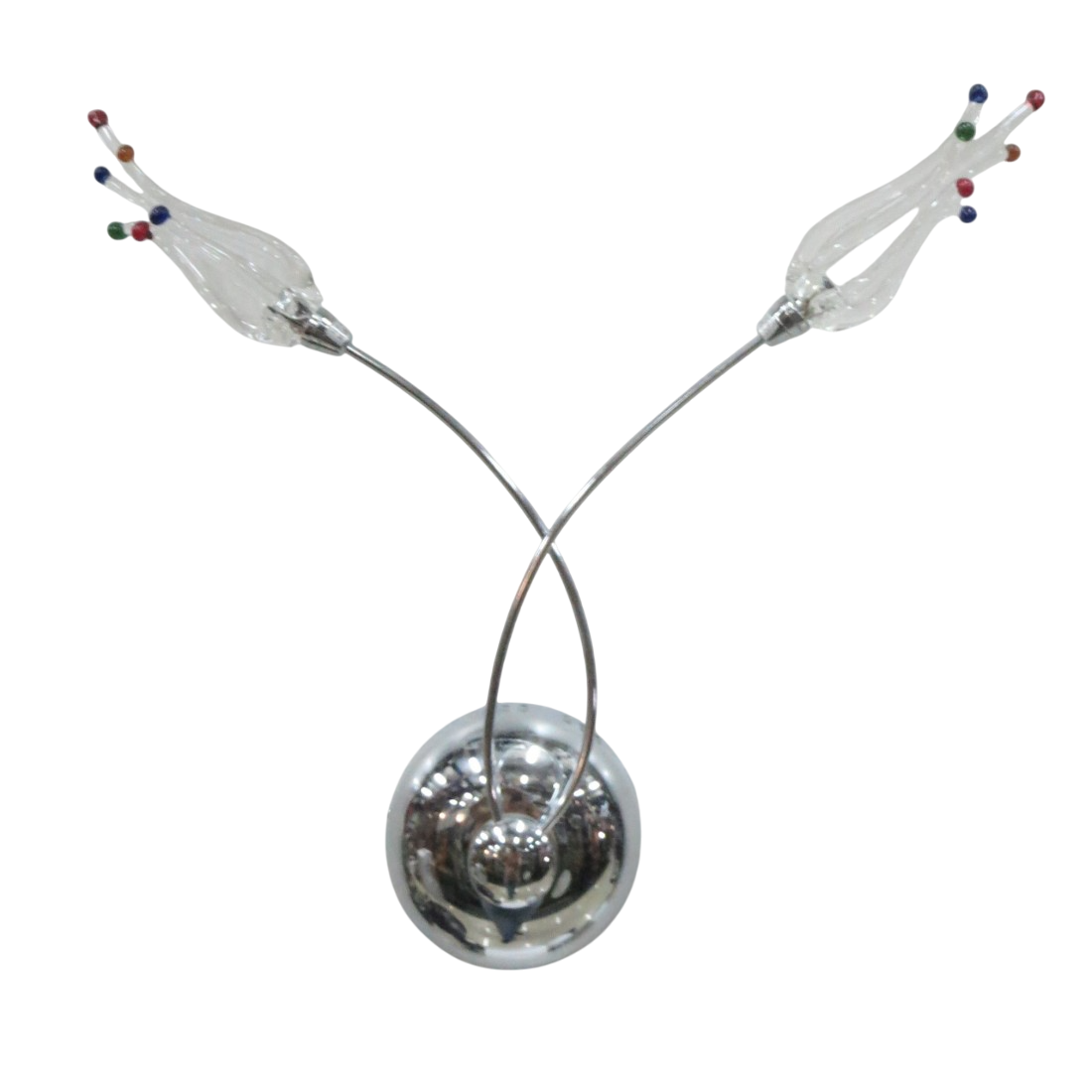 Aplique de Pared de 2 Luces acabado cromo con tulipa de cristal, borde de la tulipa de cristal de colores.