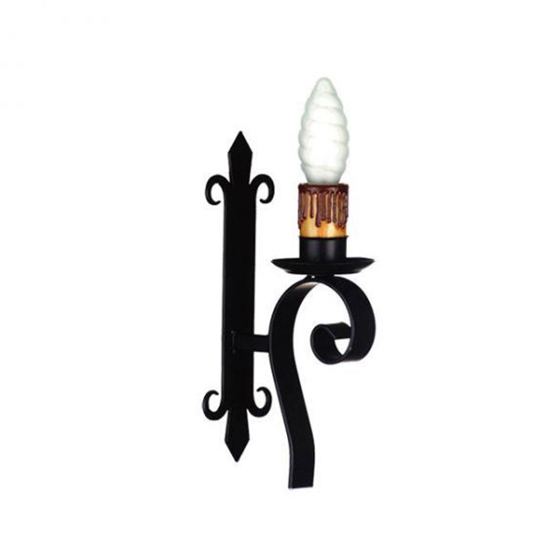 Aplique de Pared 1 Luz terminado en forja negro con pletina y caracolillo. Altura 33cm.