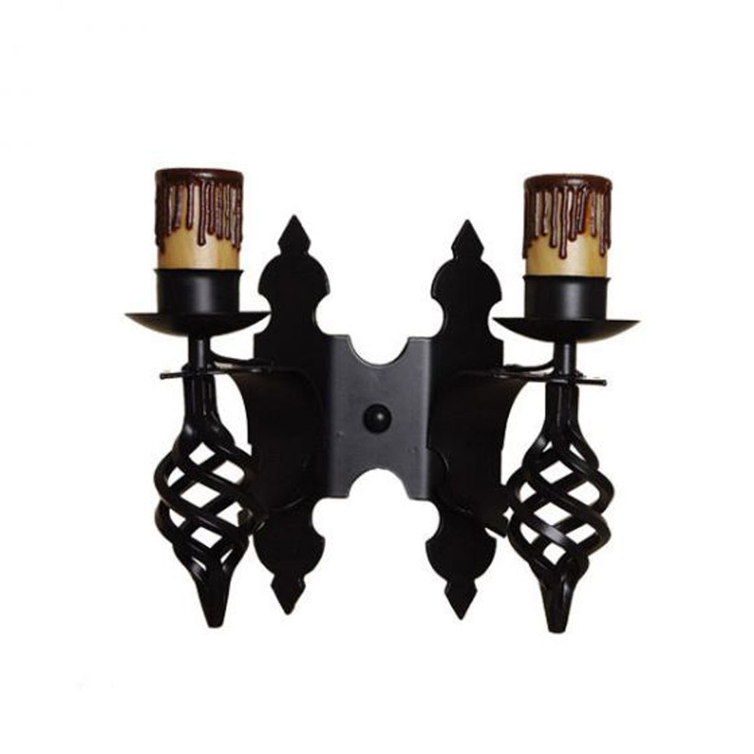 Aplique de Pared 2 luces terminado en forja negra. Altura 27cm.