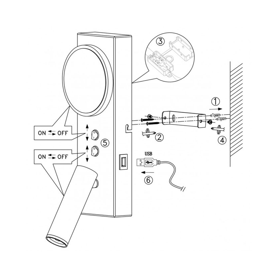 Aplique de Pared realizado en metal acabado blanco y madera con doble interruptor, foco orientable.