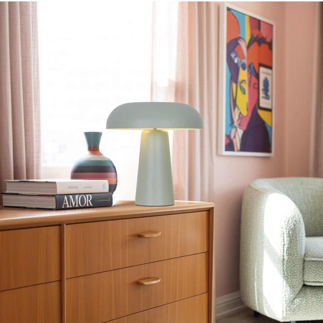 Lámpara de sobremesa de 2 Luces acabado en metal verde. Diámetro 30 cm.
