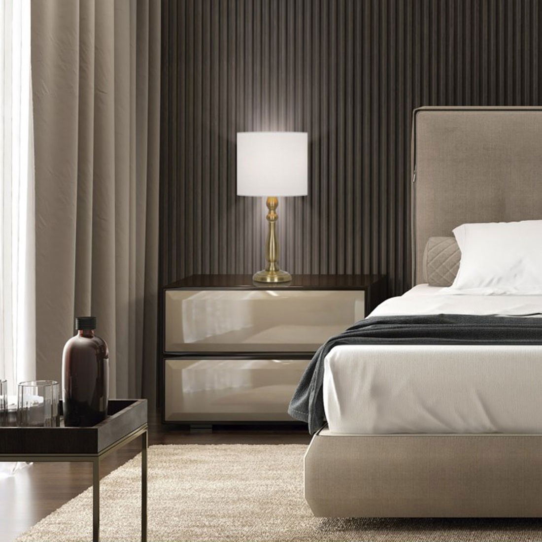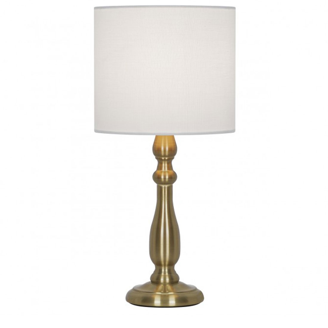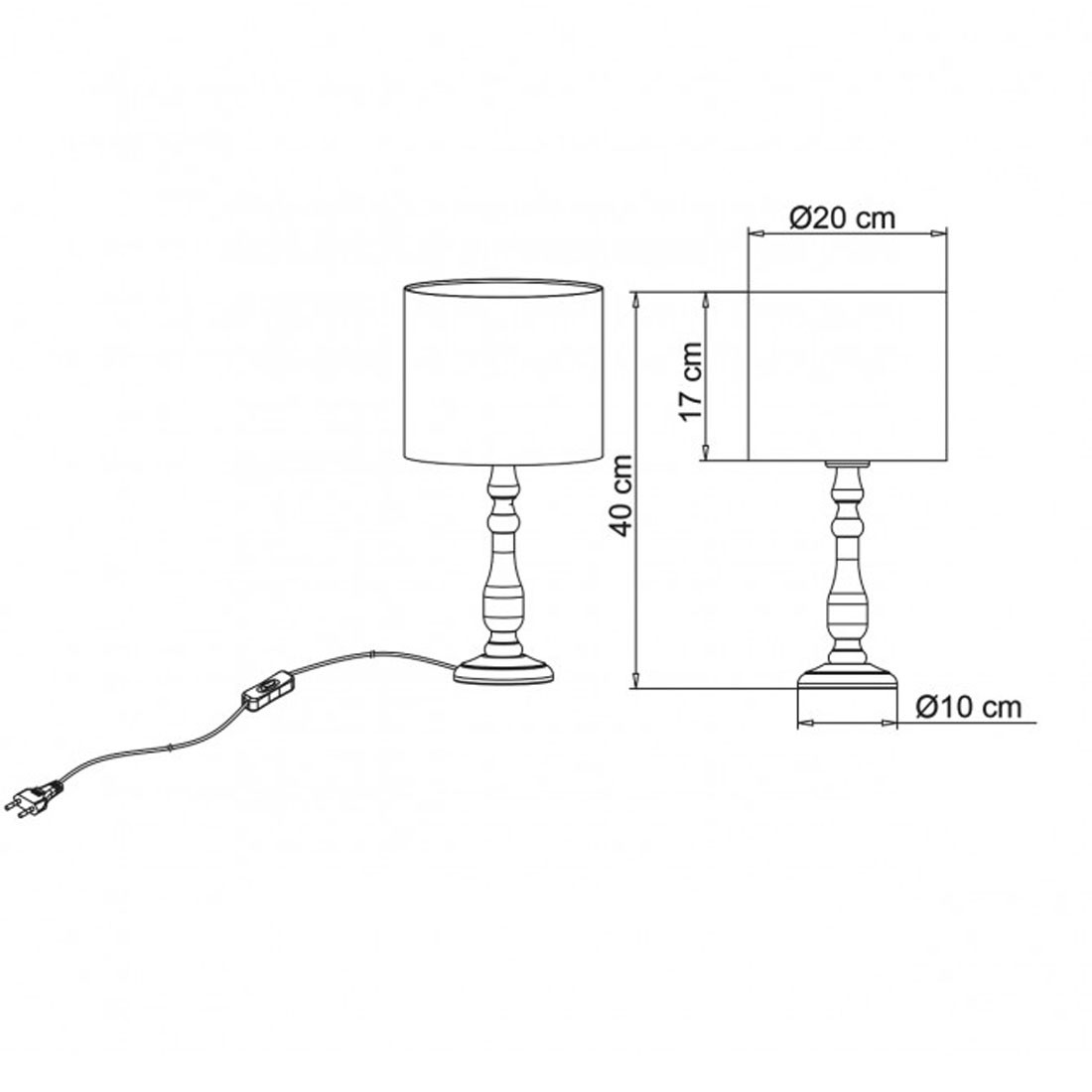 Lámpara de Sobremesa de 1 Luz realizado en metal acabado cuero con Pantalla de Tela de 20 cm de Diámetro.