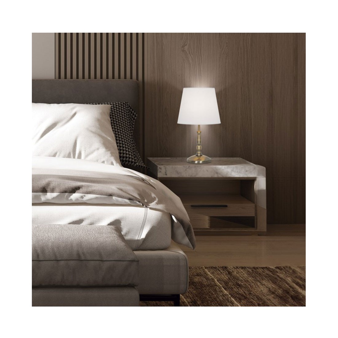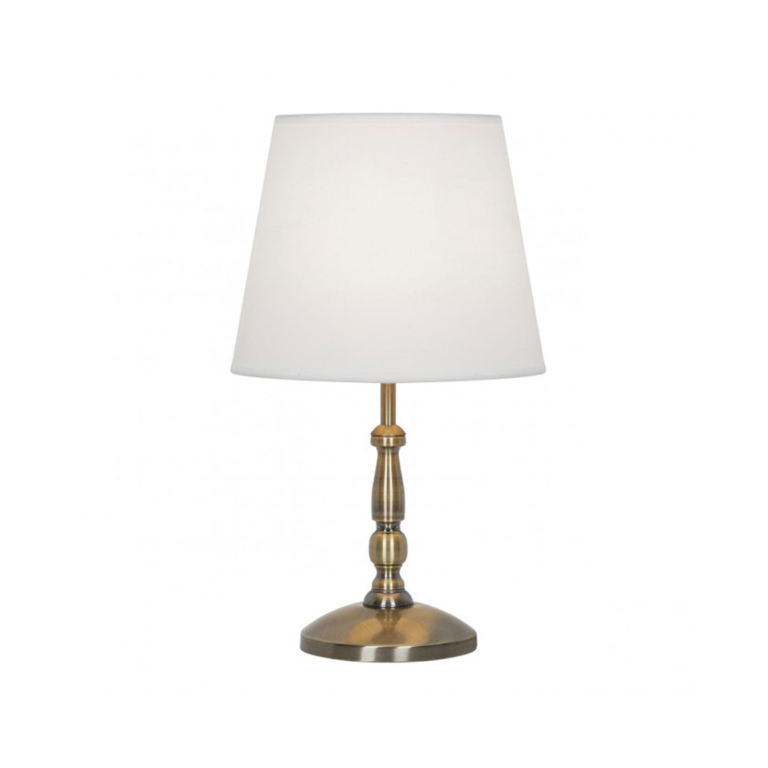Lámpara de Sobremesa de 1 Luz Base de metal acabado cuero con Pantalla de Tela blanca de 25 cm de Diámetro.