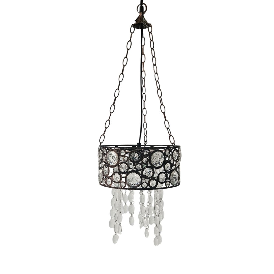 Lámpara de Techo Colgante de 1 Luz de Metal cobre envejecido con cristales transparentes acrílico. Diámetro 28 cm.