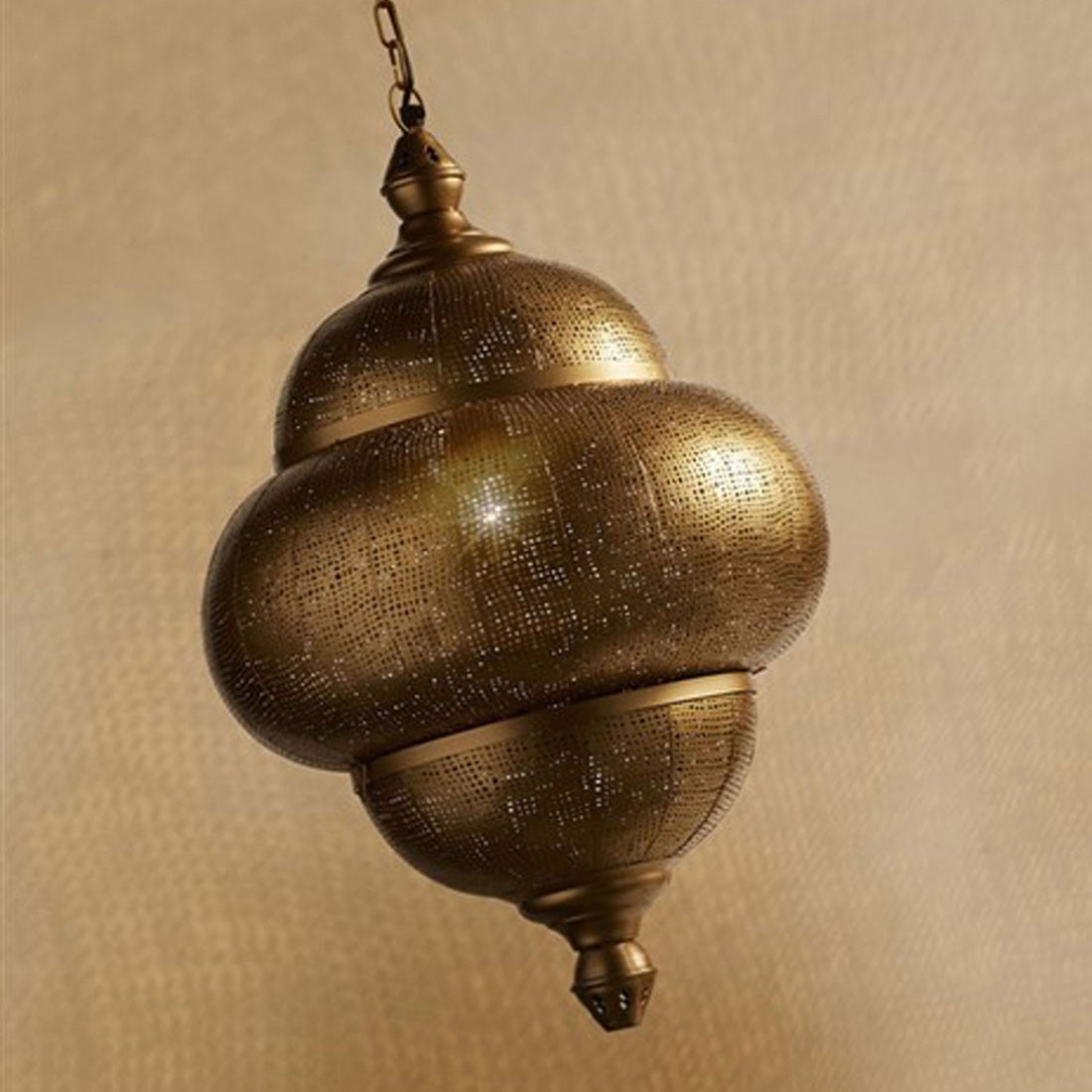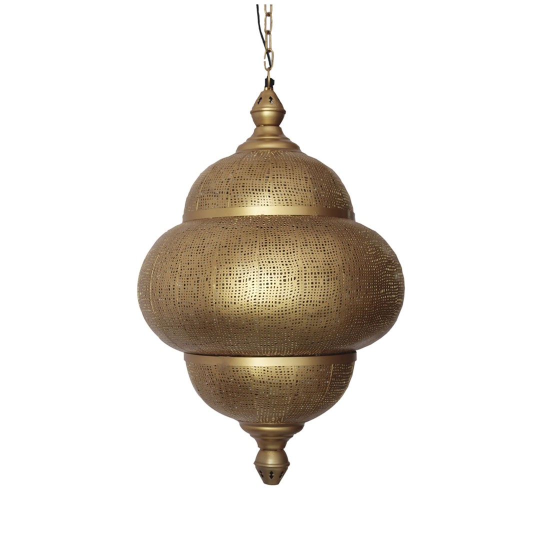 Lámpara Colgante calada con 1 Luz de metal dorado.