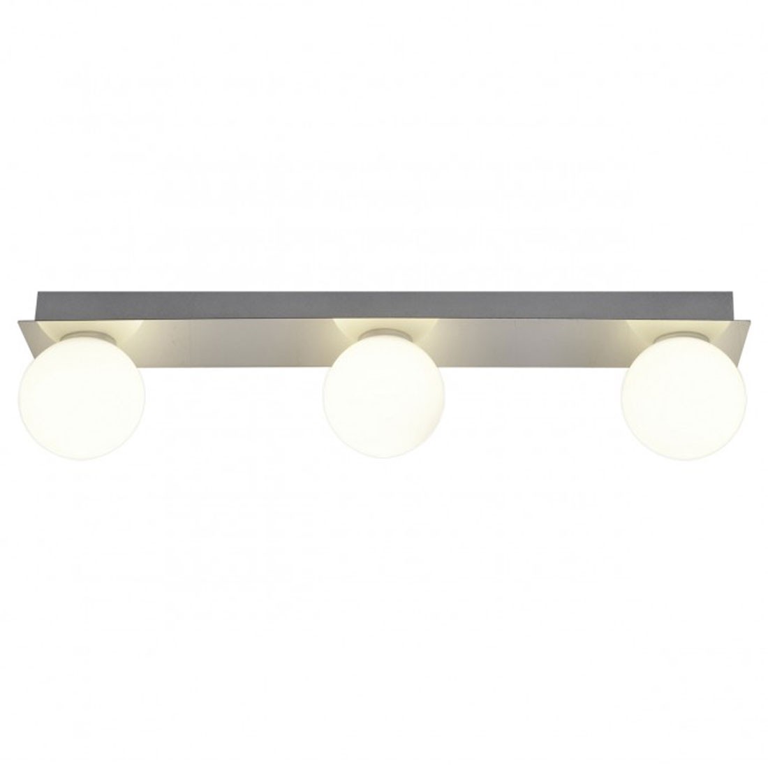 Regleta de Pared o techo de 3 luces acabado en metal cromo con tulipa de cristal opal. IP44.