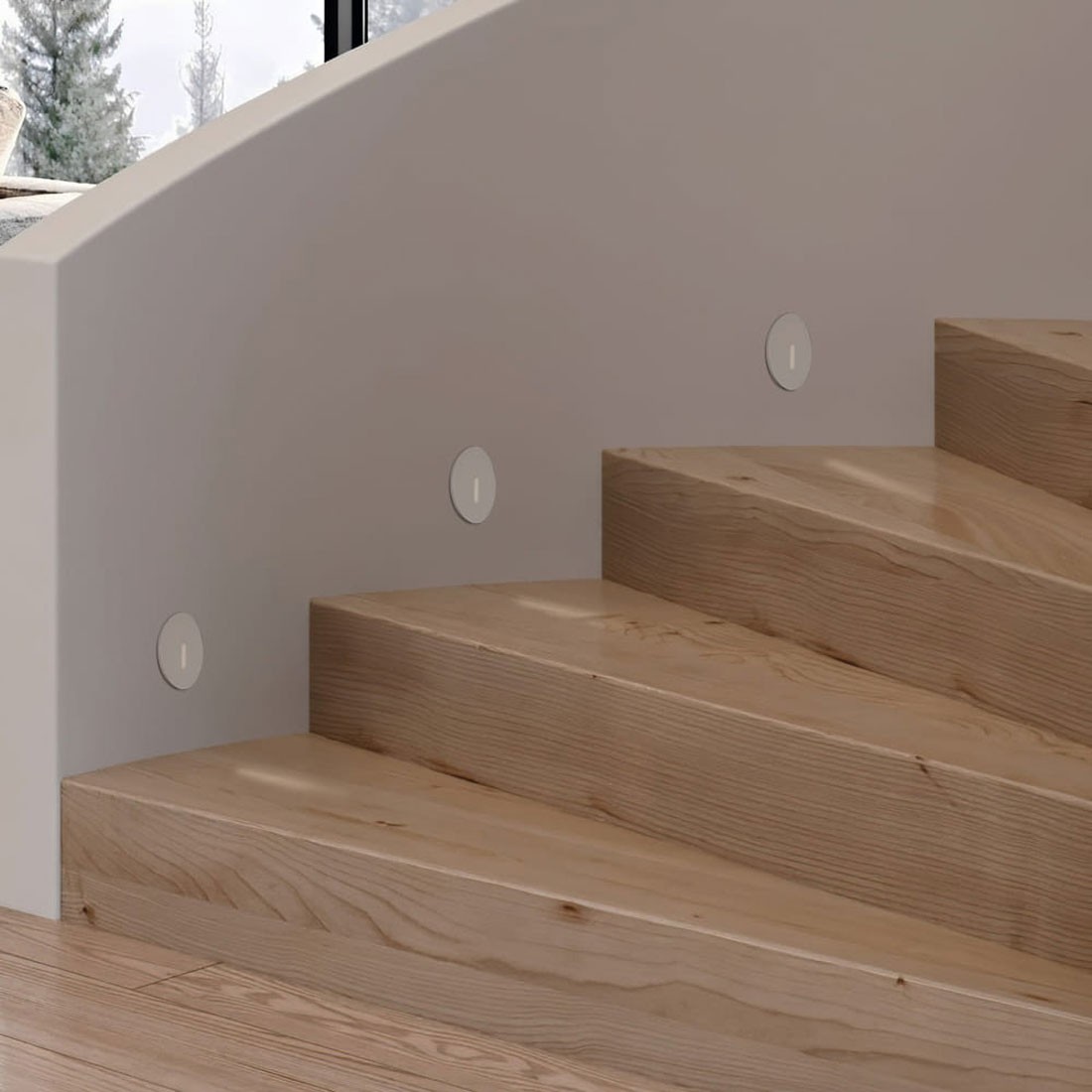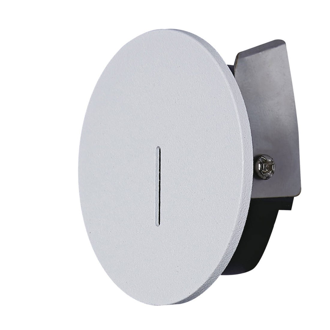 Bañador de pared para empotrar redondo blanco realizado en aluminio y policarbonato. IP42.