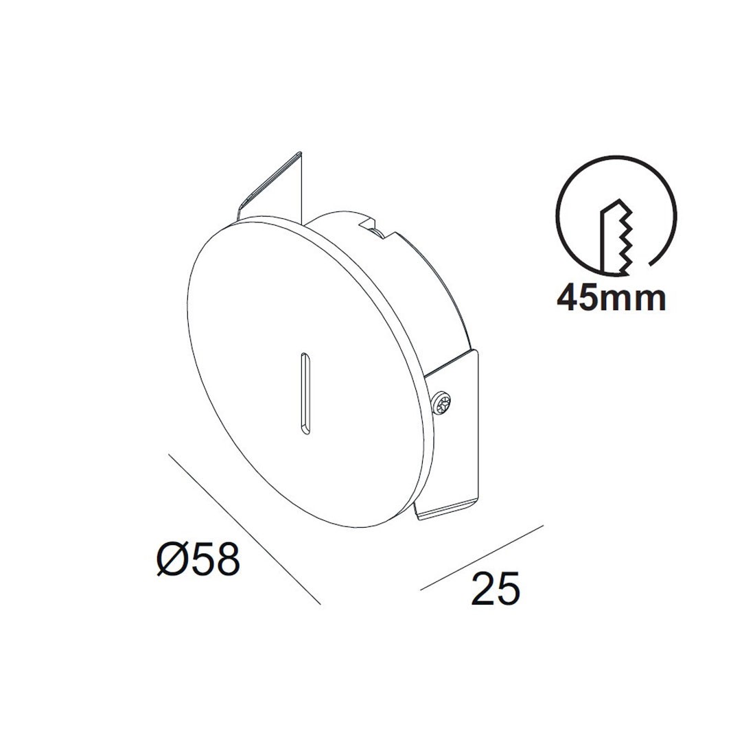 Bañador de pared para empotrar redondo negro realizado en aluminio y policarbonato. IP42.