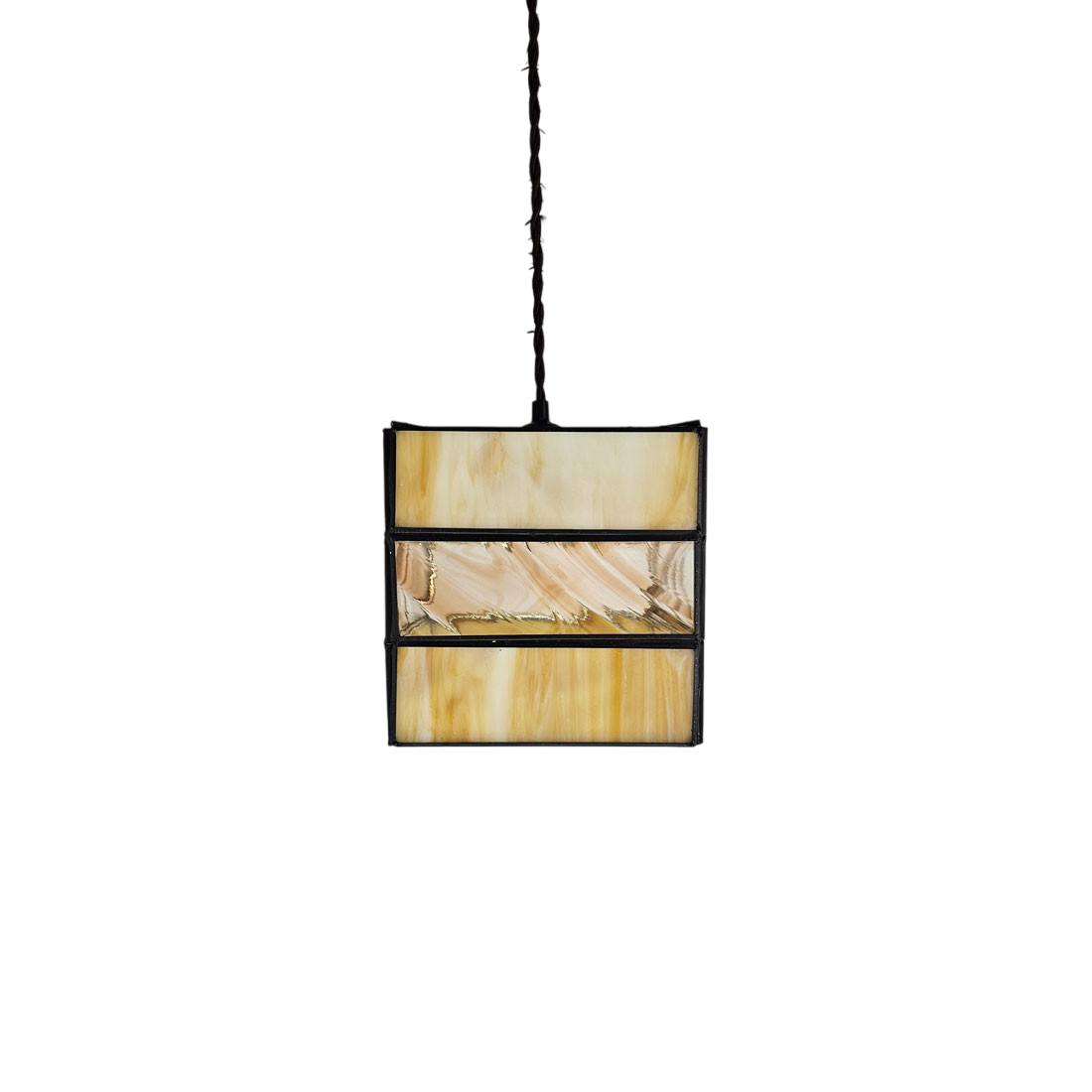 Farol cuadrado de techo con 1 Luz realizado en estaño pintado pintado viejo con cable trenzado marrón. Alto sin cable 17 cm. Altura ajustable.