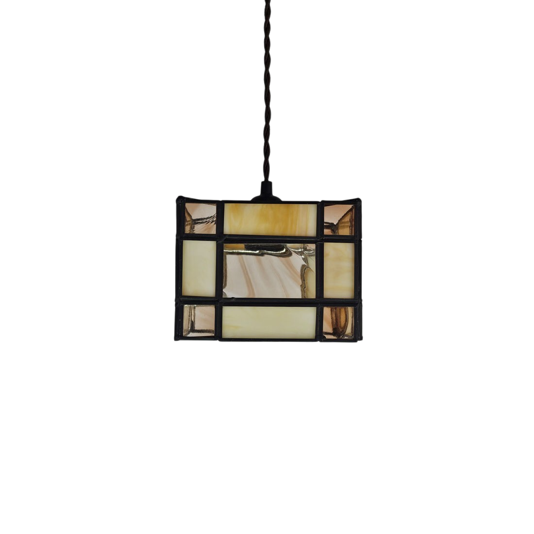 Farol pequeño de techo con 1 Luz realizado en estaño pintado pintado viejo con cable trenzado marrón. Alto sin cable 12 cm. Altura ajustable.