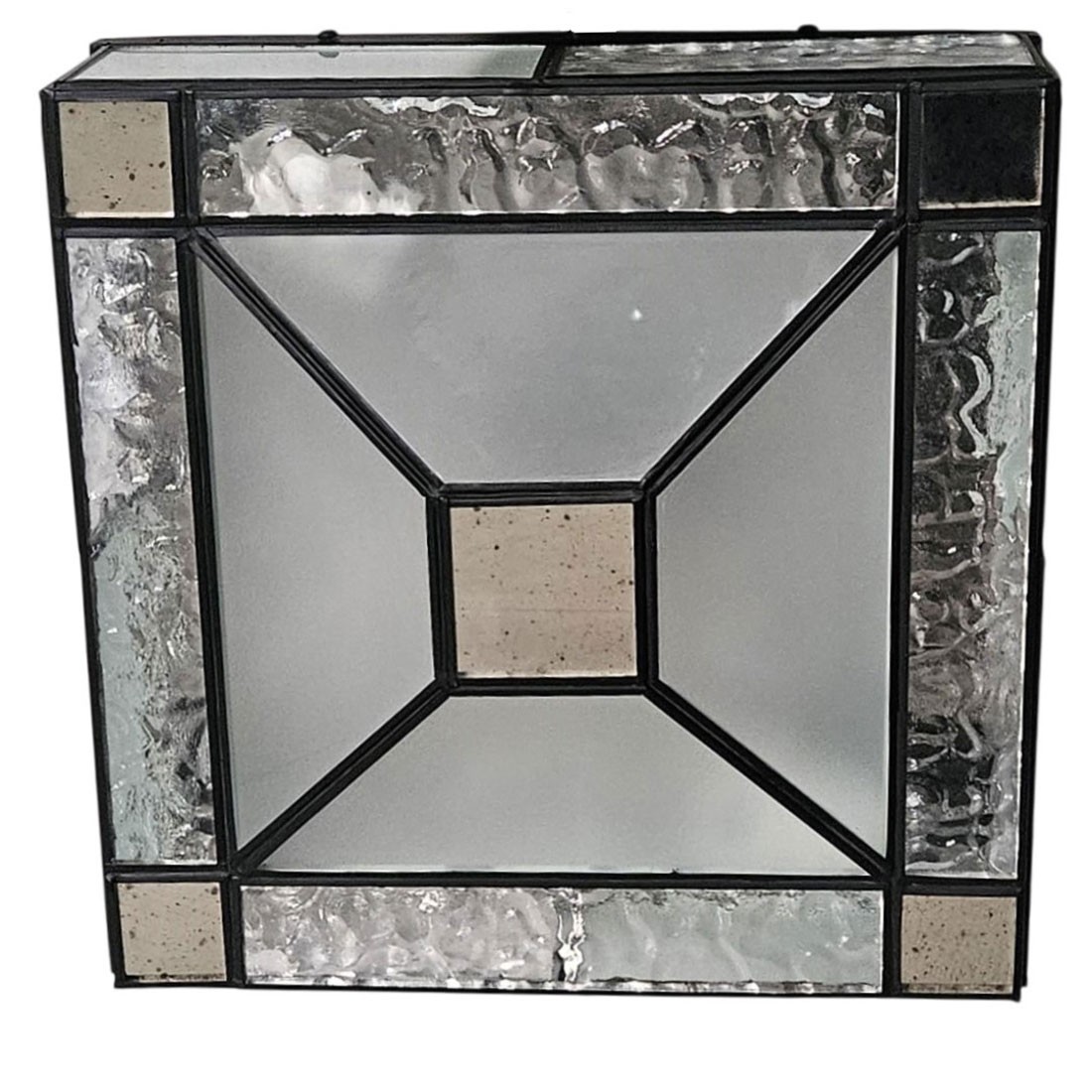 Plafón de Techo de 2 luces realizado en estaño pintado con cristal espejo moteado combinado con opal y transparente. Diámetro 30 cm.