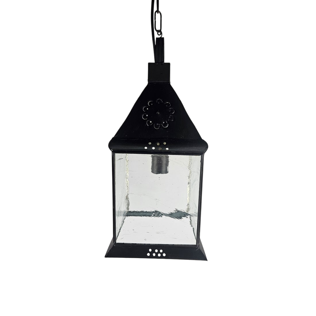 Farol de Techo de 1 Luz de metal acabado viejo y cristal transparente gótico. Medidas 42*20 cm. Altura ajustable. IP20.