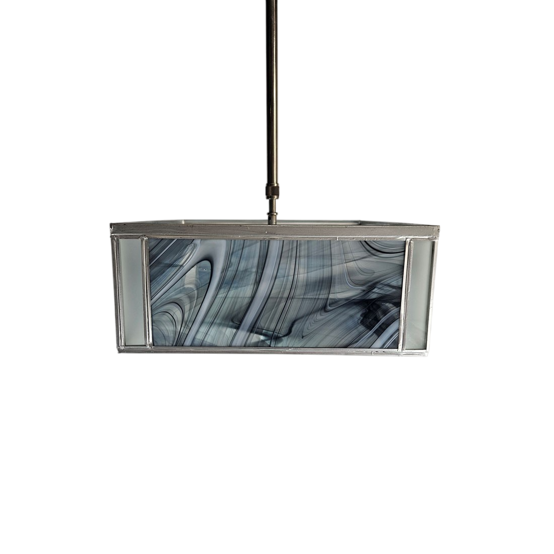 Semi Plafón de Techo de 1 Luz de metal pintado en plata vieja y cristal con decoración verona azul. Medidas 31*49 cm.