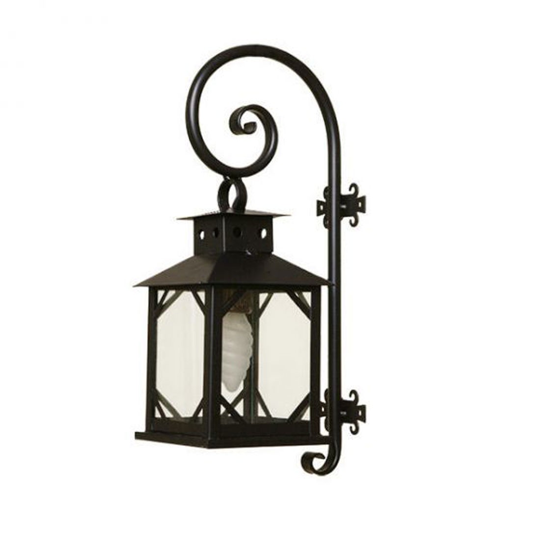 Farol de Pared de Forja acabado Negro con pescante. 1 Luz, Admite bombillas led..