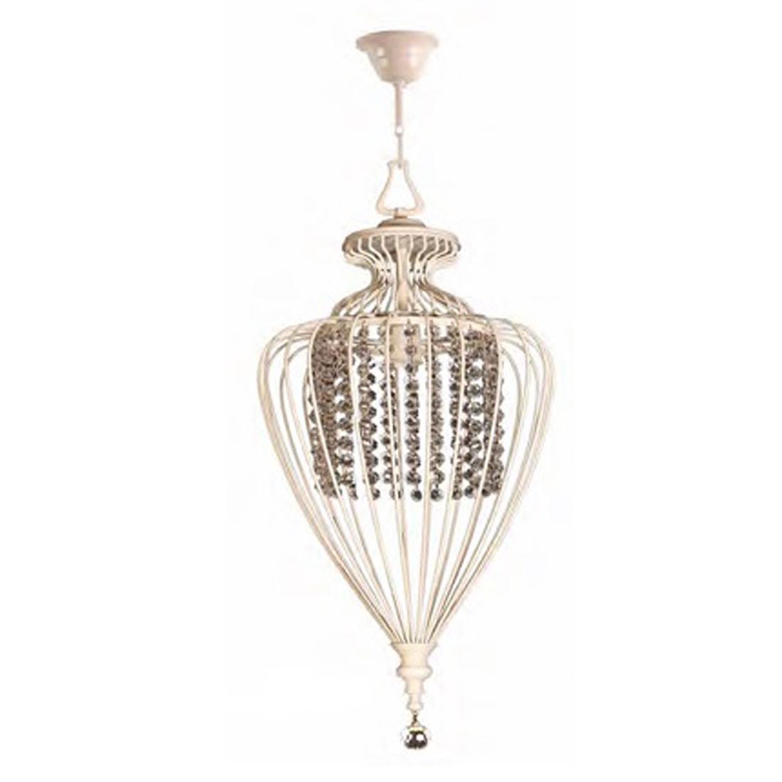 Farol realizado en varilla de 1 luz acabado marfil con lagrimas de cristal. Lámparas fabricadas en España. Altura ajustable, diámetro 35 cm.