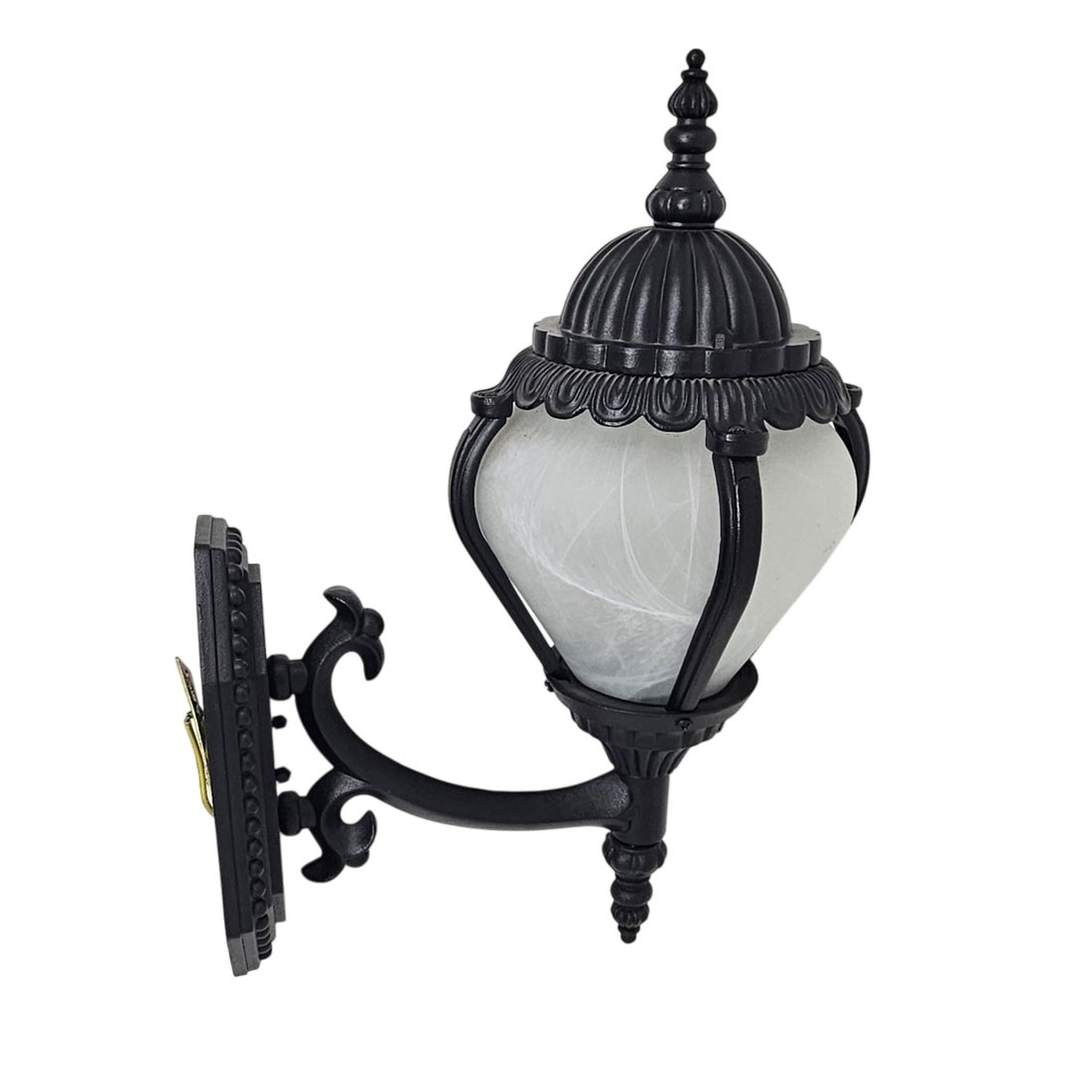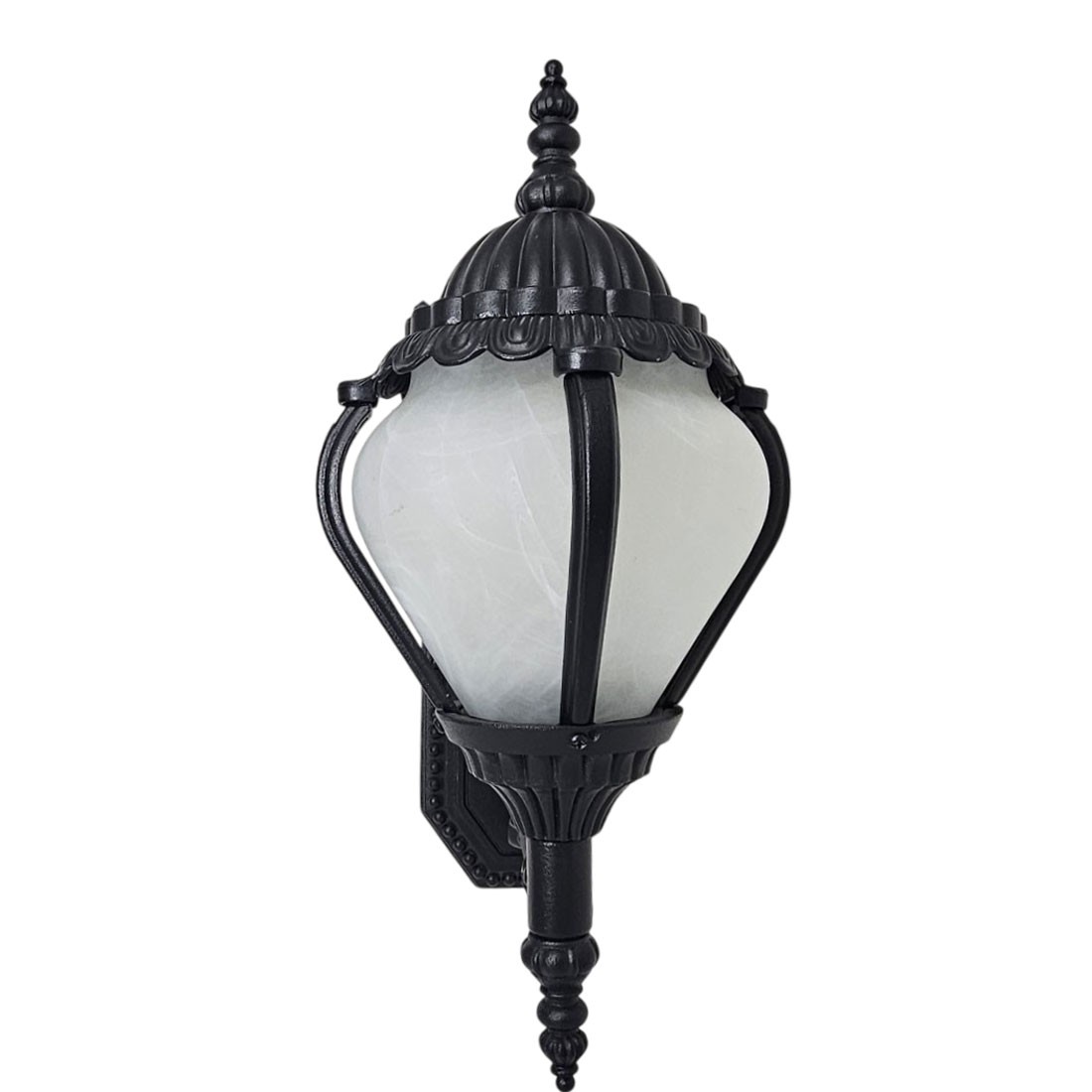 Aplique de Pared de 1 Luz de aluminio acabado negro y cristal marmolizado blanco. Alto 42 cm.