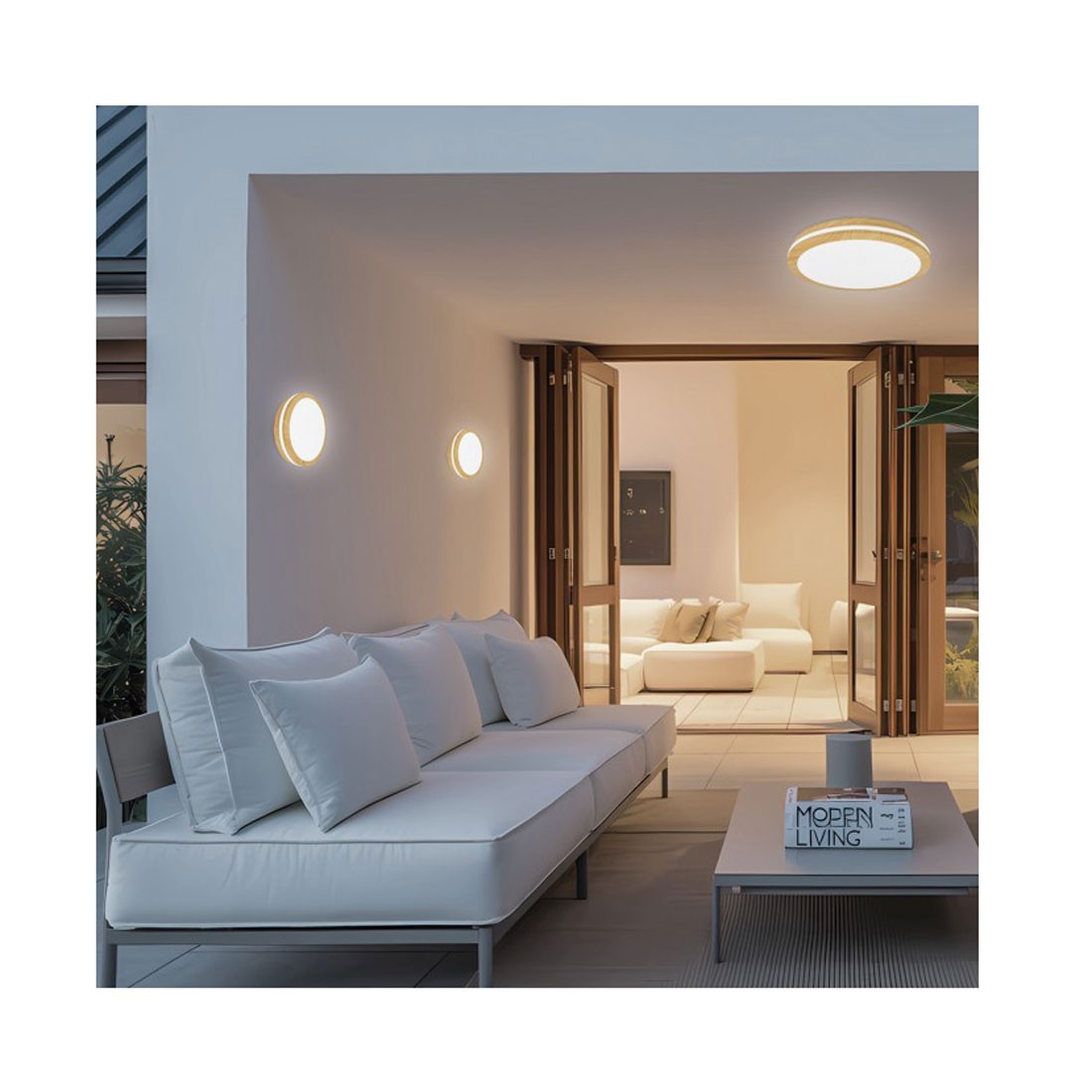 Lámpara de Techo plafón Led de metal y acrílico acabado madera. IP54.