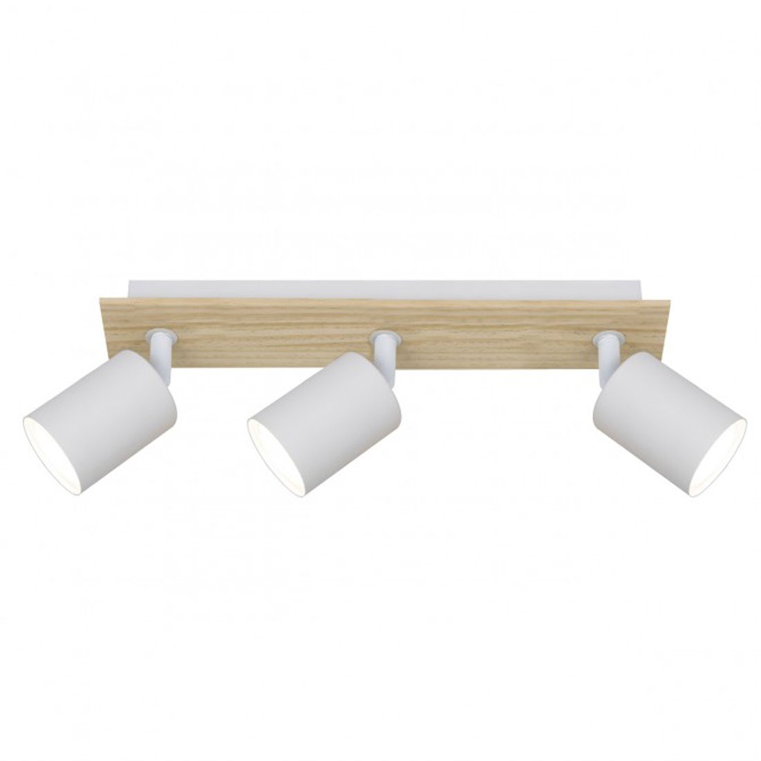 Regleta de 3 Luces de metal acabado blanco con base de madera. Rótula giratoria.