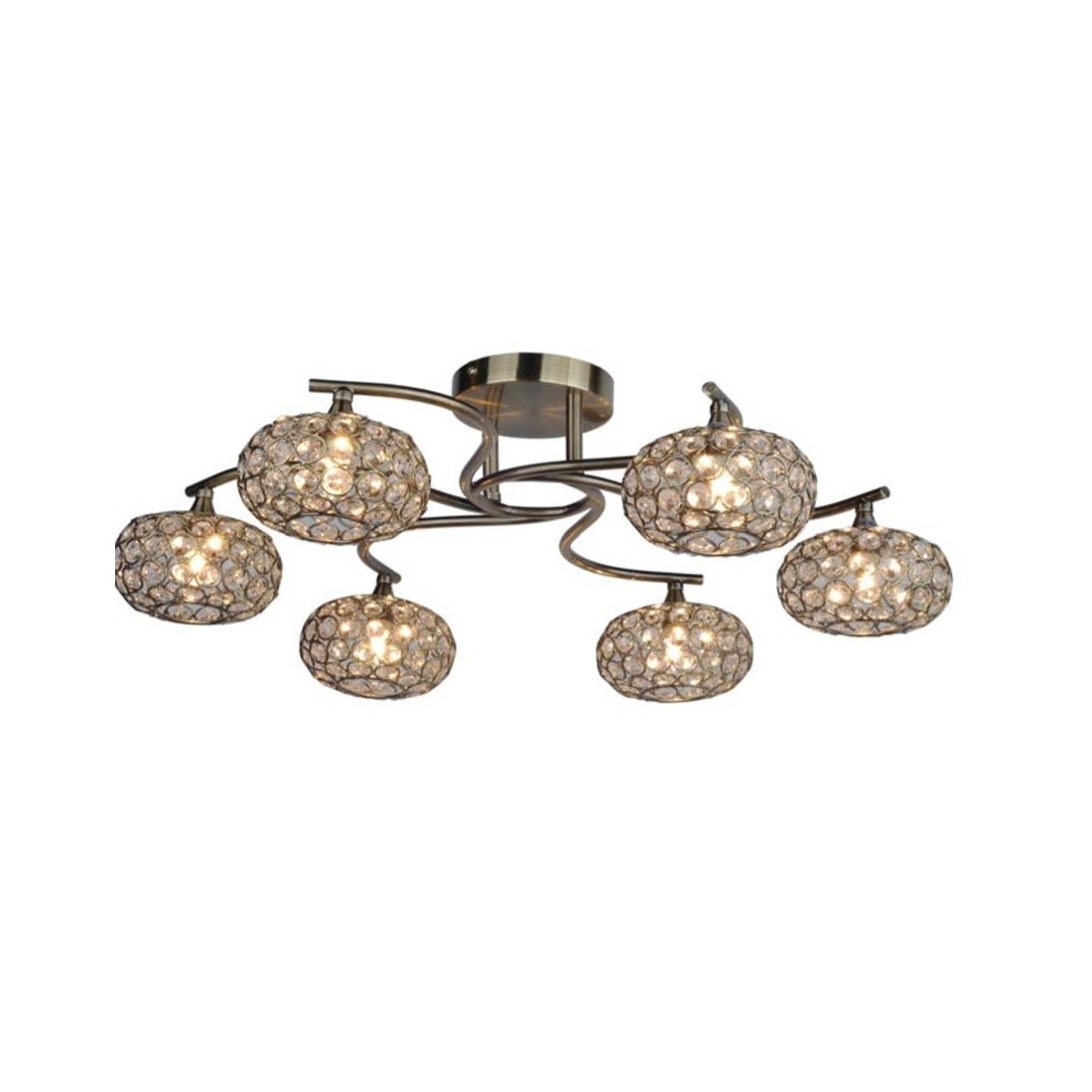 Plafón de Techo de 6 luces de metal cuero con tulipas con copens de cristal.