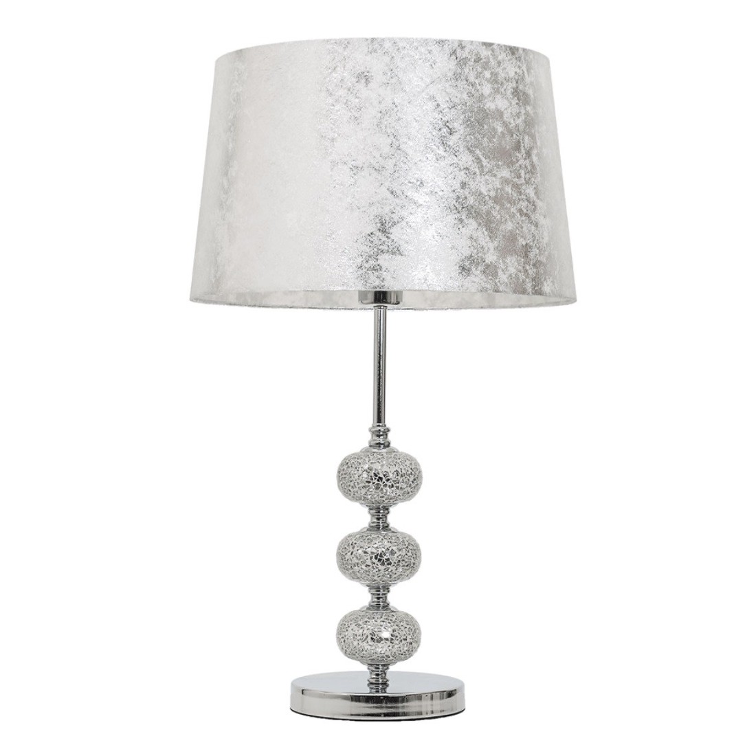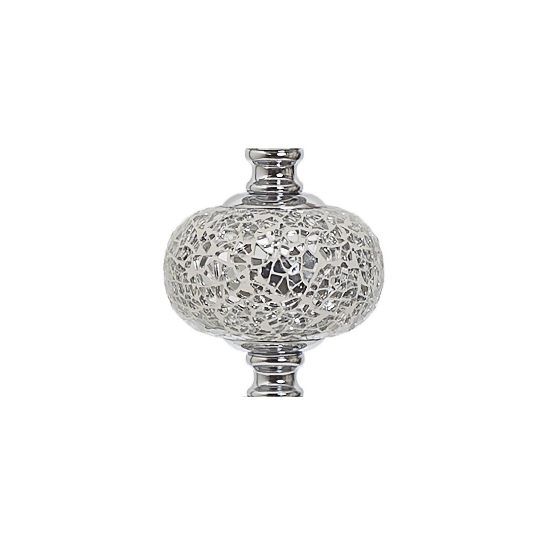 Lámpara de Rinconera de 1 Luz de metal acabado cromo con detalles mosaico en la estructura y pantalla pan de plata.