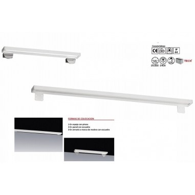 Aplique disponible para colocar en la pared o para encajar en el espejo del baño en dos medidas 40 y 70 cm, en luz cálida o natural, 3000 ó 4000K.