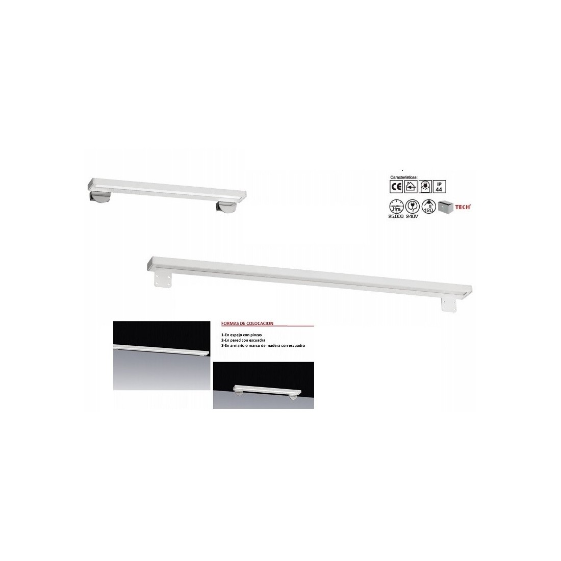 Aplique Led de metal acabado blanco con pinza para sujetar en el espejo o escuadra para colocar en la pared o en la madera. Longitud 40 cm