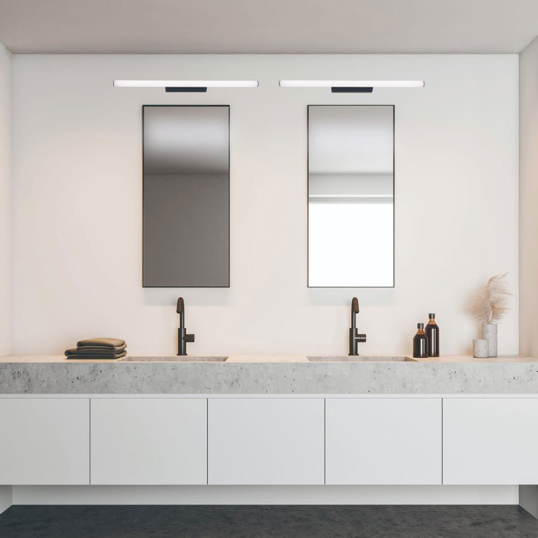 Aplique de pared led realizado en policarbonato acabado negro. IP44.