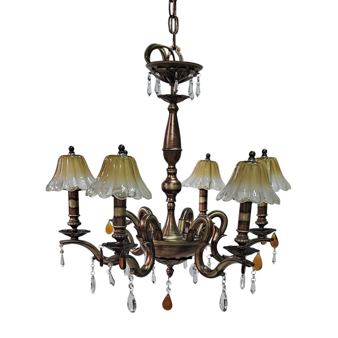 Lámpara de techo de 6 luces bronce acabado viejo. Altura ajustable. Diámetro 72 cm.