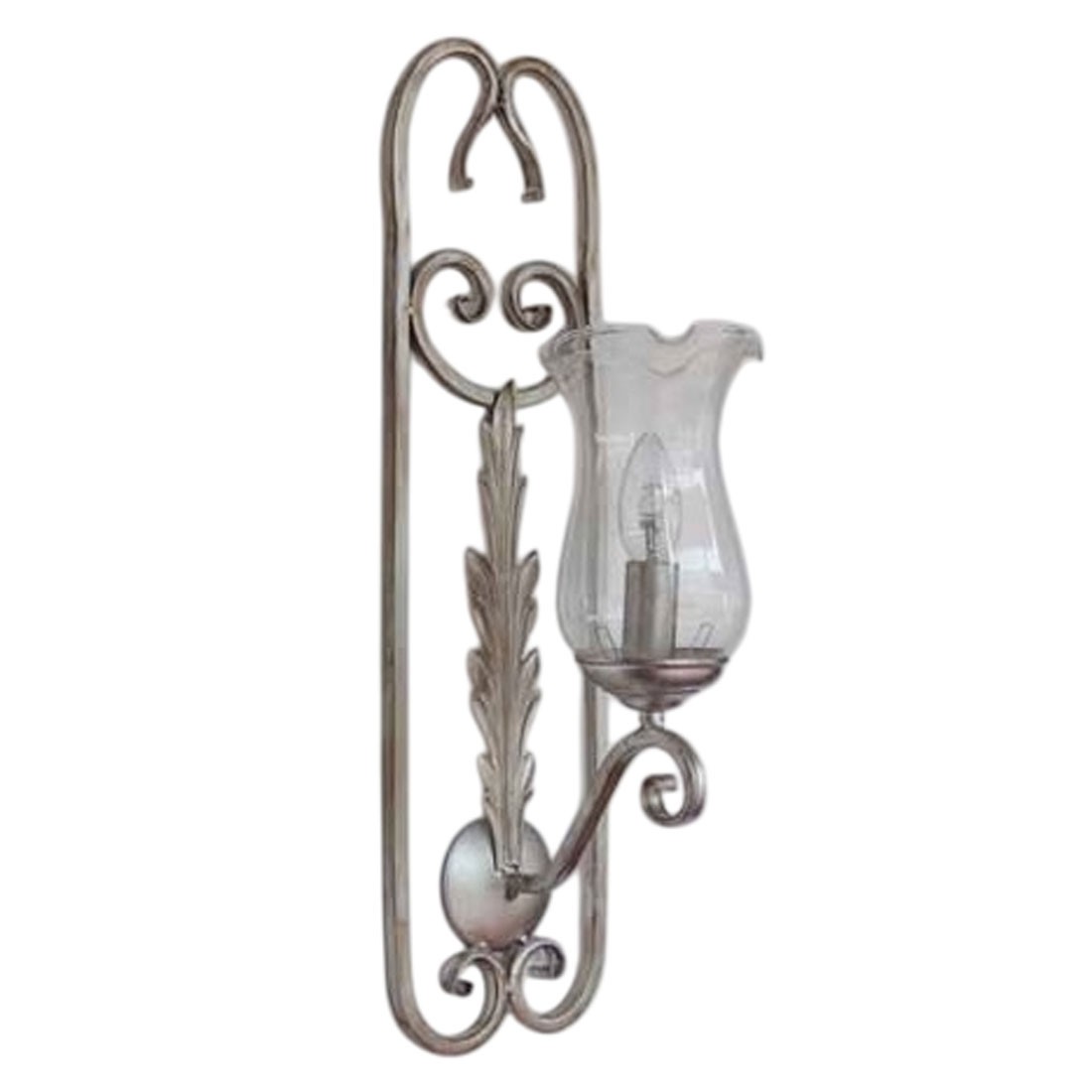 Aplique de Pared de 1 Luz fabricado en forja acabado plata vieja con tulipa de cristal. Lámparas fabricadas en España.
