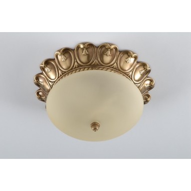 Plafón de Techo de Bronce 1 Tulipa Boina Plafón Amarilla. Acabado Pulido + Satinado Manual Cuero con Barniz Brillo. 2 luces, Bombillas Bajo Consumo. Peso 1,3 Kgs.