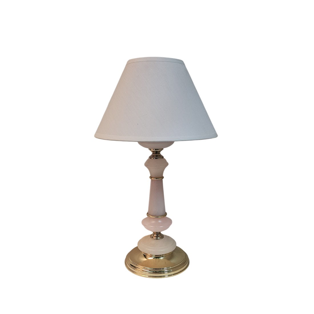Sobremesa de 1 Luz realizado en metal baño dorado con columna de mármol y pantalla de tela. Lámparas fabricadas en España.