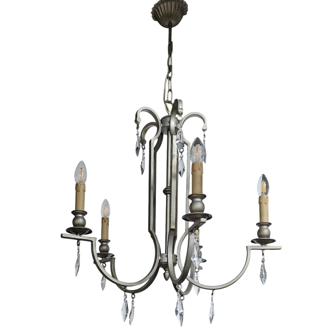 Lámpara de Techo de 5 Luces acabado champan con copens de cristal. Altura ajustable.