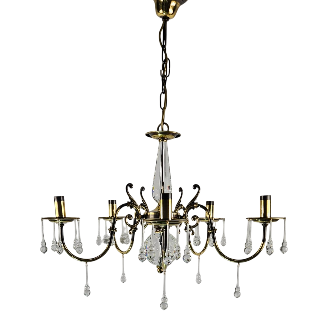Lámpara de Techo de 5 brazos de bronce acabado Cuero con cuerpo de Cristal de bohemia y lagrimas de cristal plomo. Altura ajustable