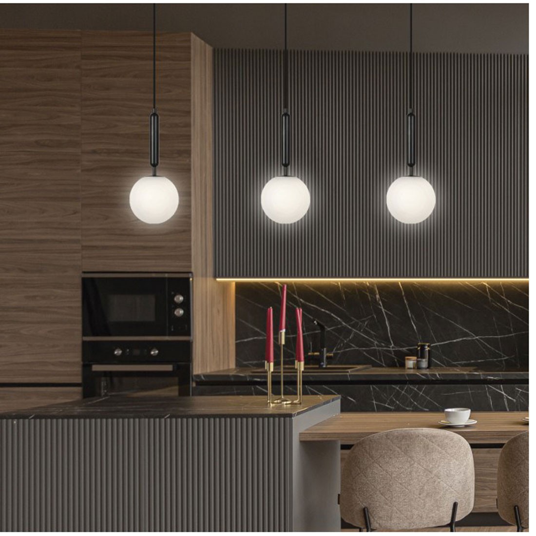 Lámpara de Techo de 1 Luz de metal con tulipa opalina acabado negro. Altura ajustable Máx 240 cm.