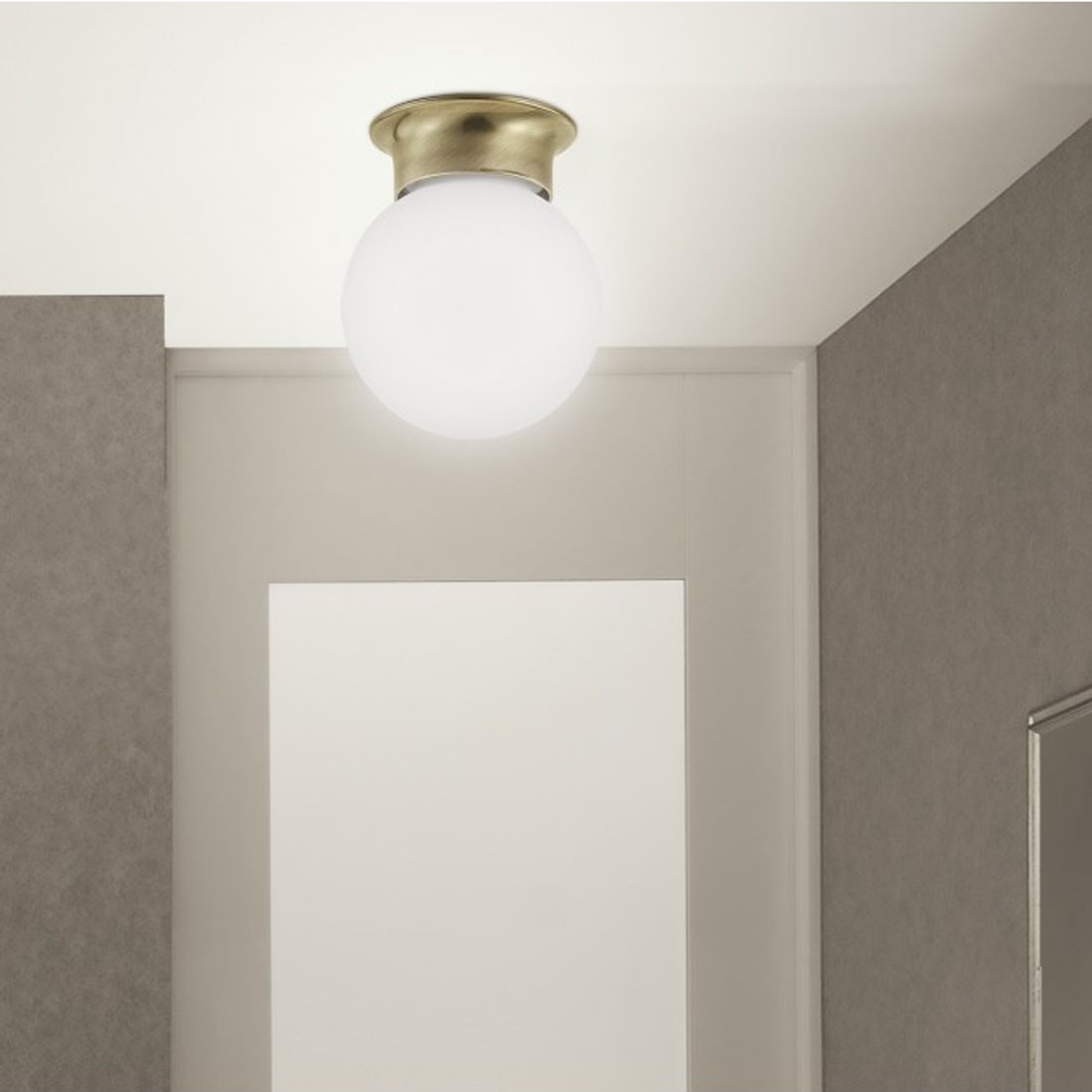 Plafón de techo de 1 Luz de metal cuero con bola de cristal Blanca.