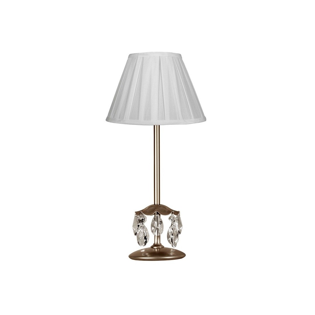Lámpara de Sobremesa de 1 luz acabado plata con pantalla de tela y copens de cristal.