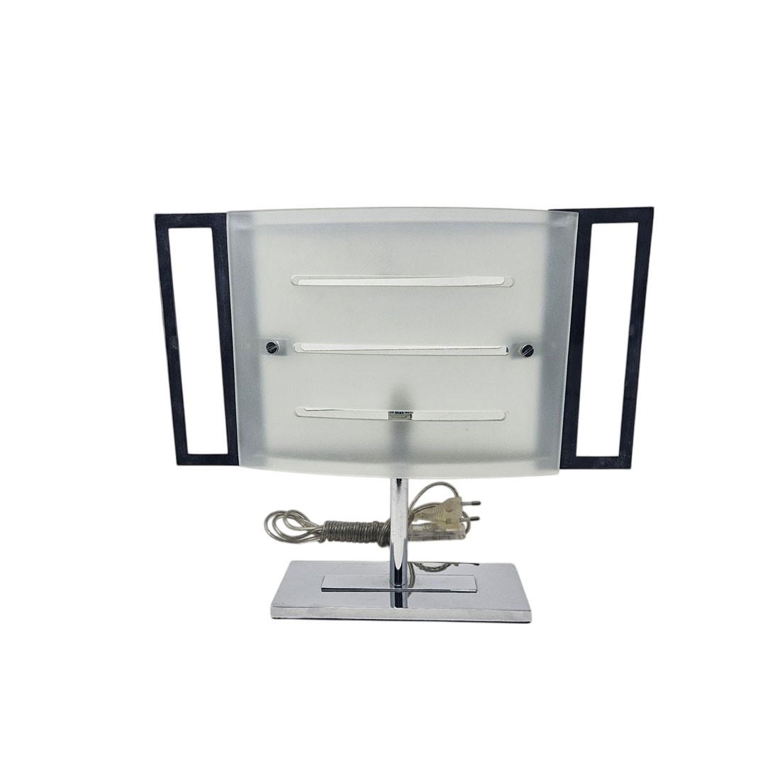 Lámpara Sobremesa de 1 Luz acabado cromo con tulipa de cristal.