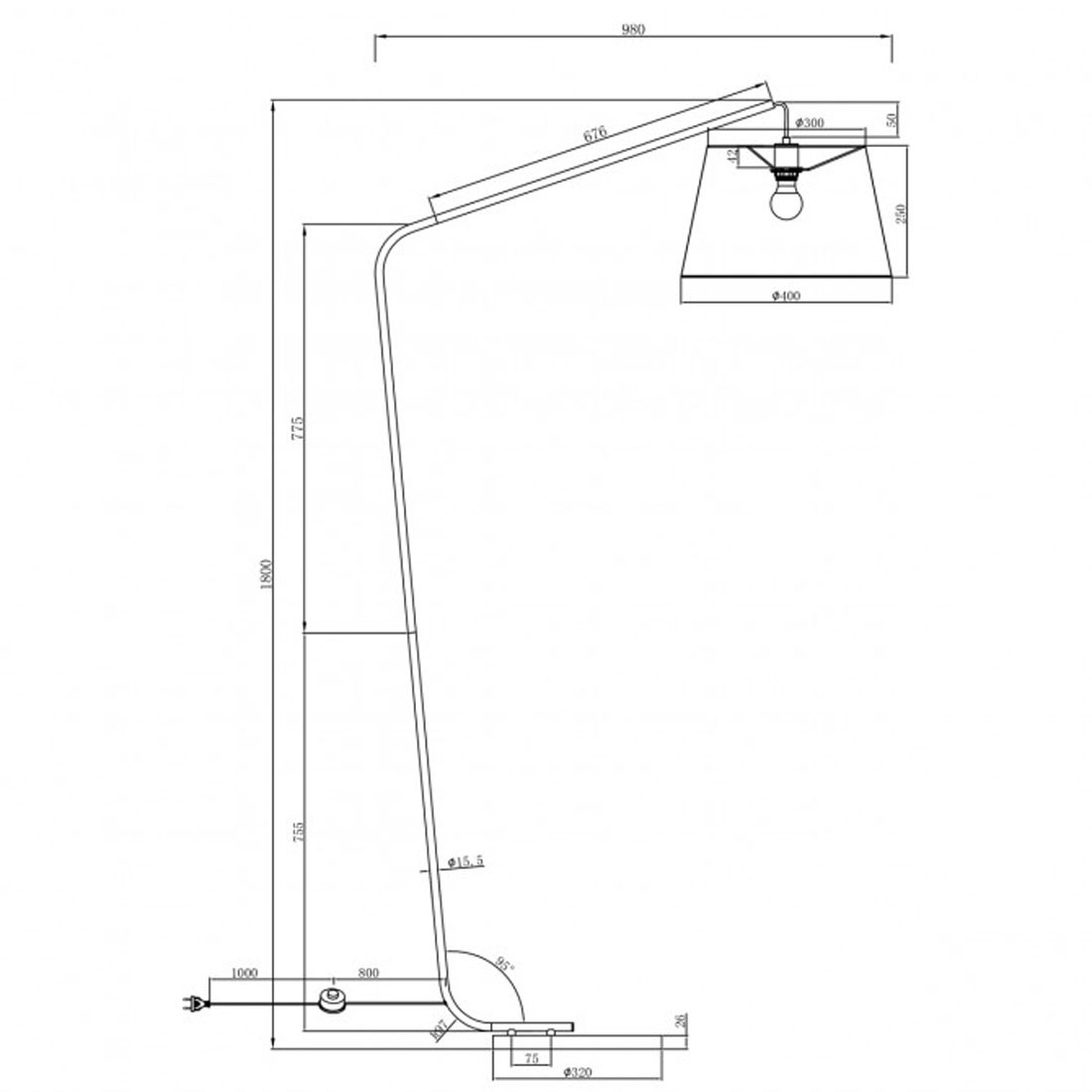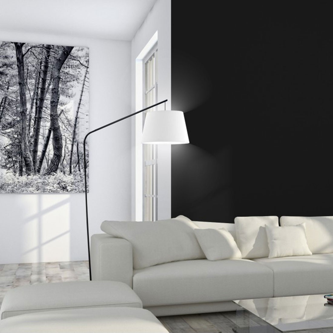 Lámpara de Pie de Salón de 1 Luz acabado en metal negro con pantalla textil blanco roto.