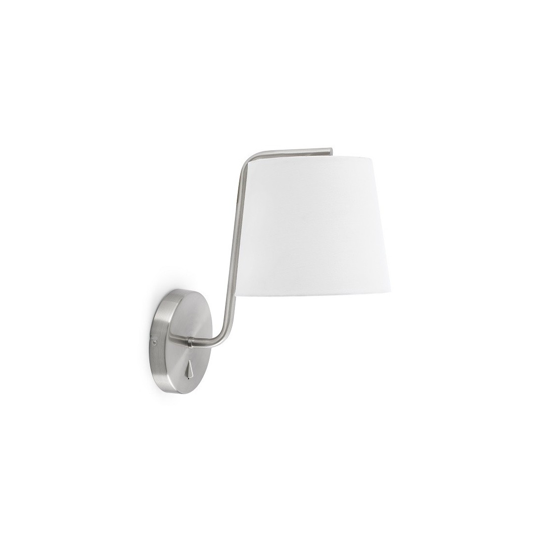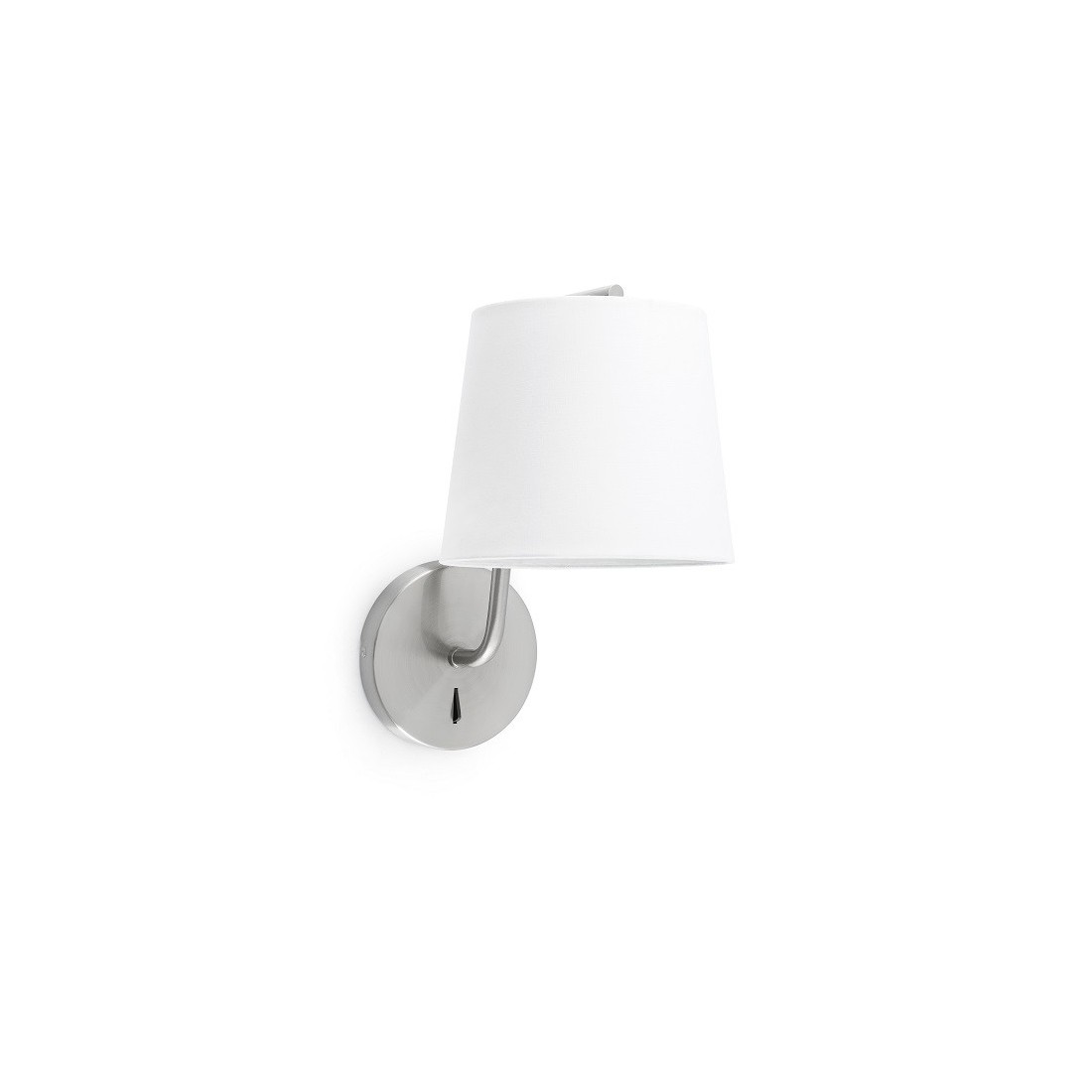 Aplique de Pared de metal níquel satinado y pantalla textil blanca de 29 cm de diámetro.