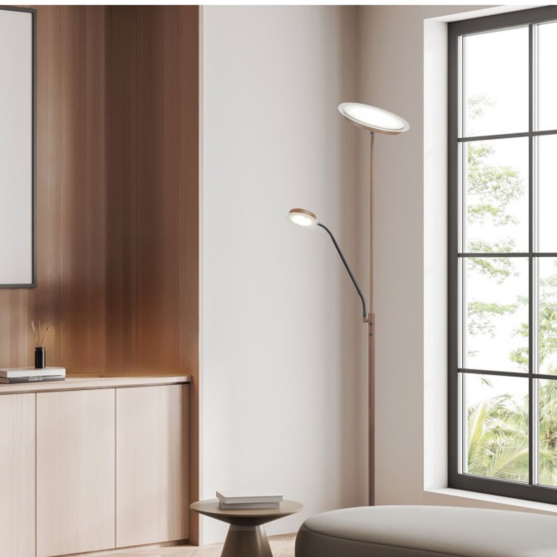 Lámpara de Pie Madera Negro con Lector e Intensidad Regulable