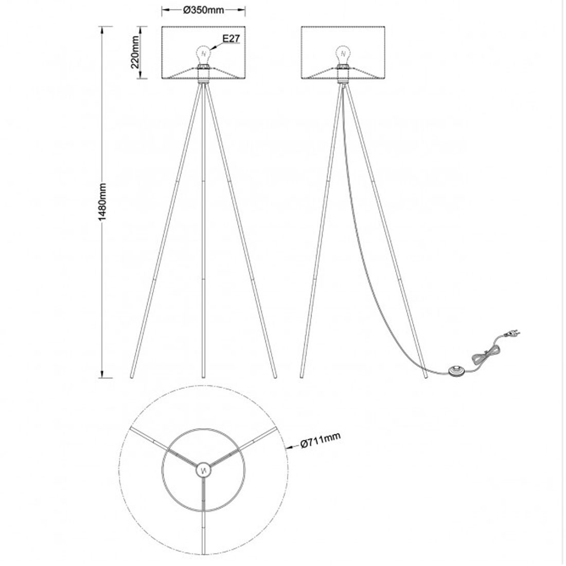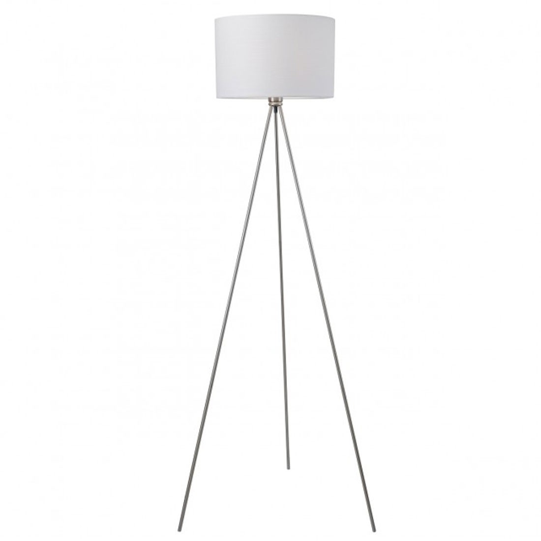 Lámpara de Pie de Salón trípode de 1 Luz de metal níquel con pantalla de tela de lino.