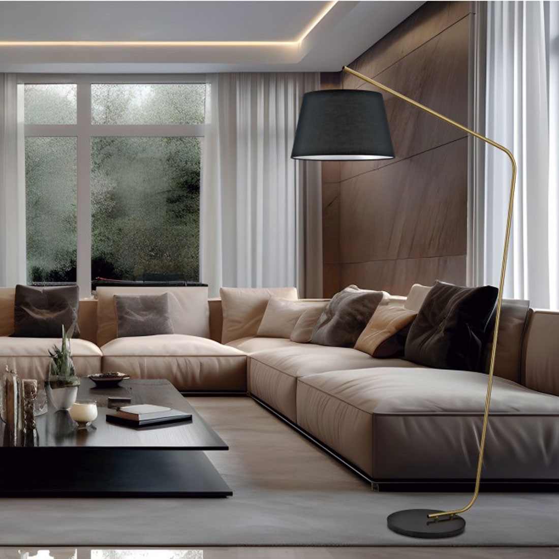 Lámpara de Pie de Salón Arco Cuero Pantalla Negra