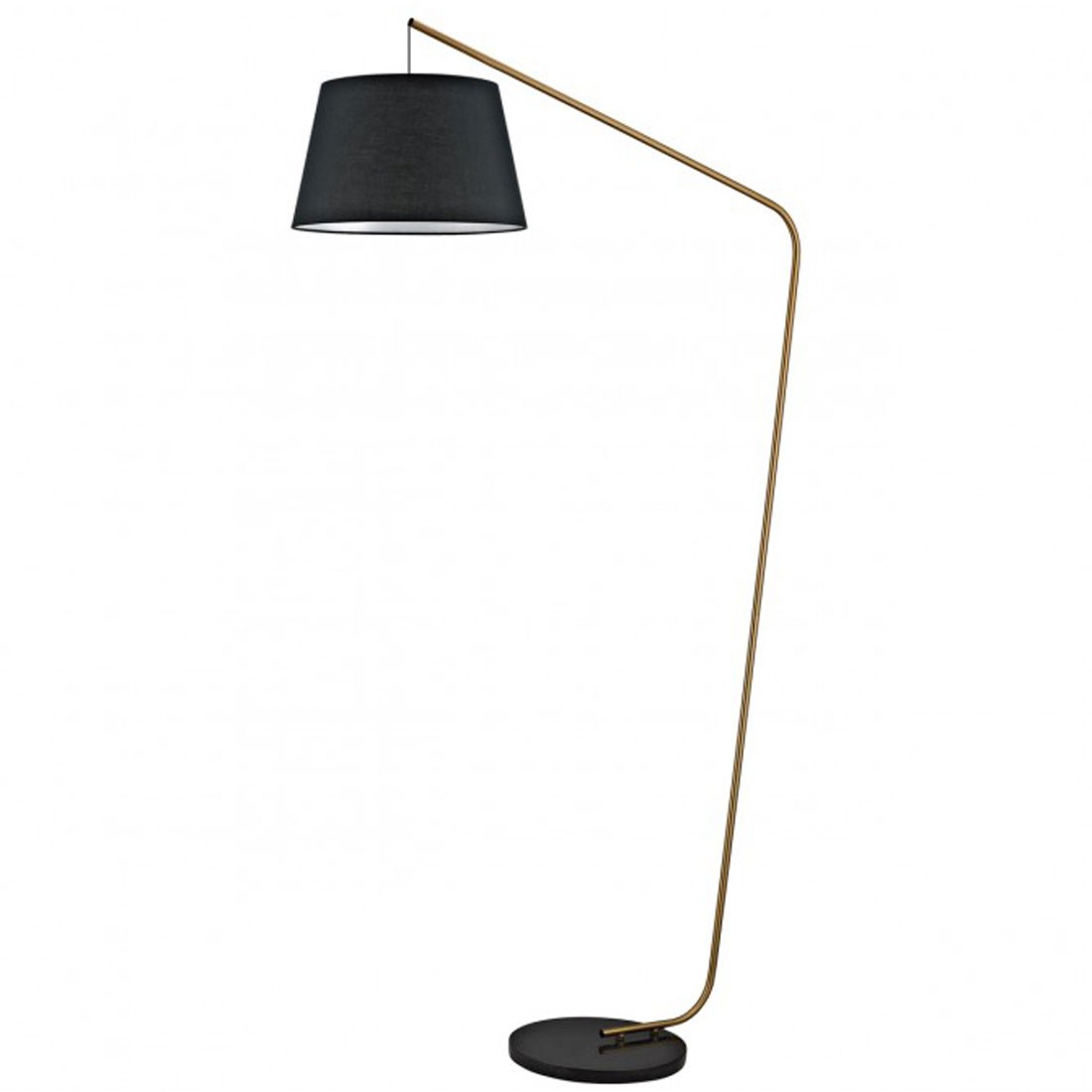 Lámpara de Pie de Salón de 1 Luz acabado en metal latón con pantalla textil negra.