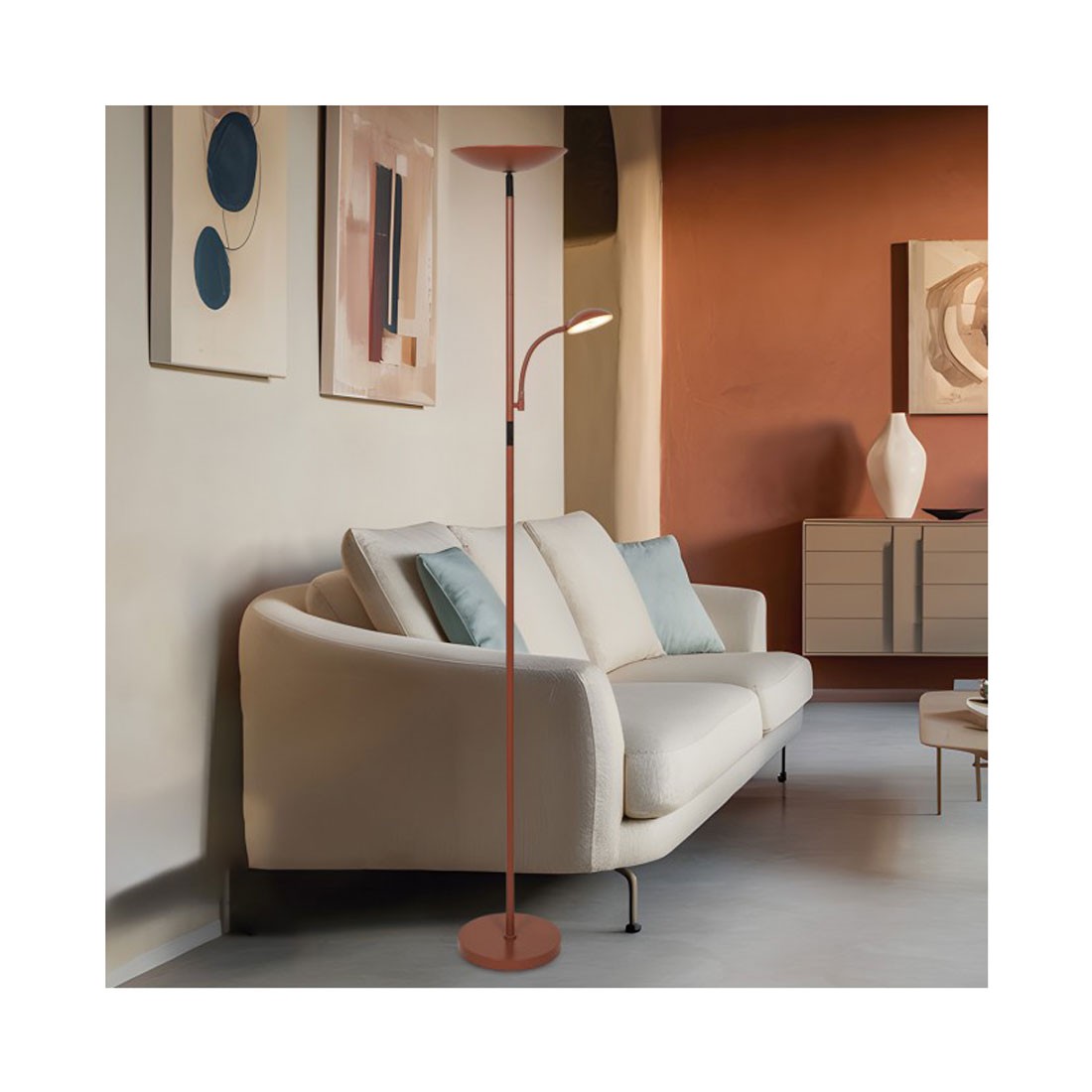 Lámpara de Pie de Salón Led con Lector realizado en Metal acabado terracota.