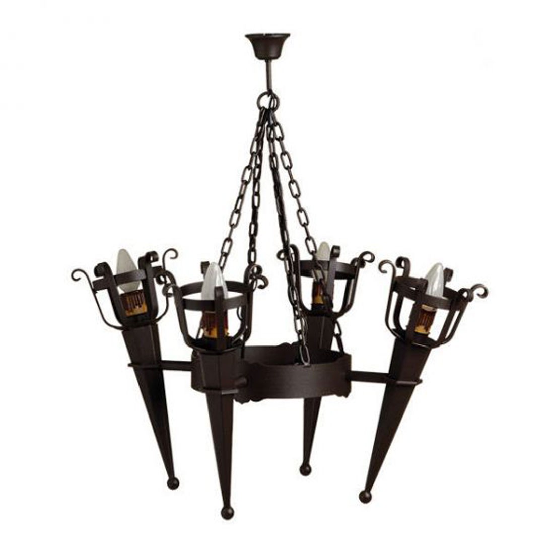 Lámpara de Techo de 4 luces de Forja con brazo antorcha color Negro. 4 Luces Vela, admite luz led. Altura Ajustable.