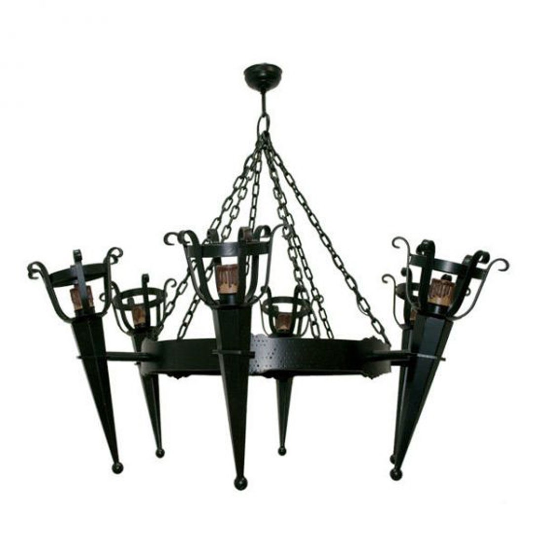 Lámpara de Techo de 6 luces de Forja con brazo antorcha color Negro. 6 Luces Vela, admite luz led. Altura Ajustable.