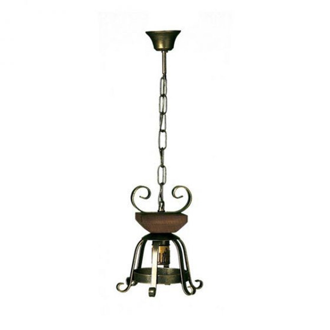 Lámpara de Techo de 1 luz de Forja con cabezal antorcha color Negro y viga de madera. 1 luz Vela, admite luz led. Altura Ajustable.